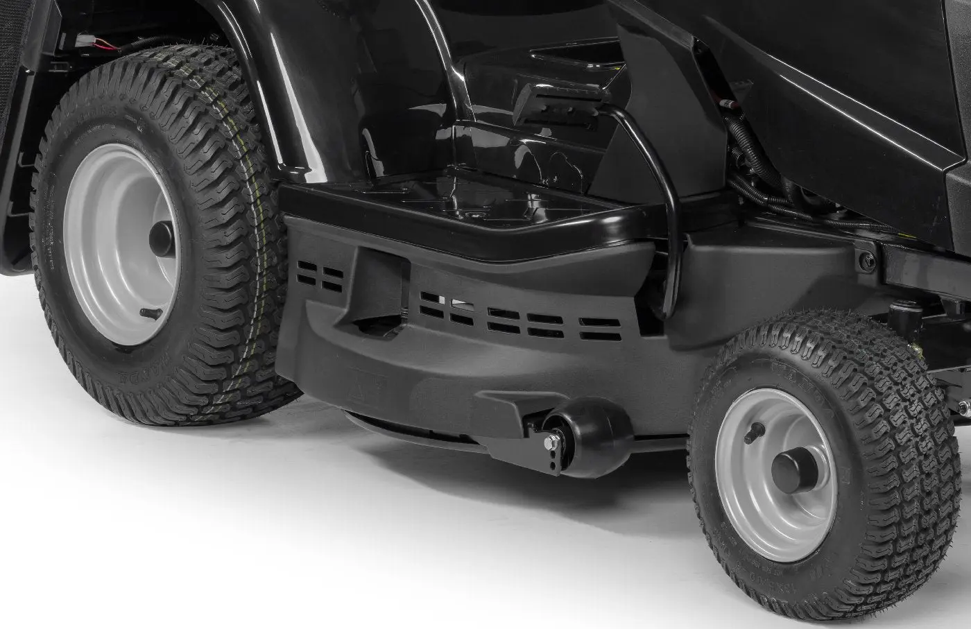 Der 200 Liter Grasfangkorb reduziert die Häufigkeit von Entleerungen und kann bequem vom Sitz aus entleert werden. Optional ist ein Mulchkit erhältlich, mit dem das Schnittgut fein zerkleinert und als natürlicher Dünger auf dem Rasen verteilt wird.